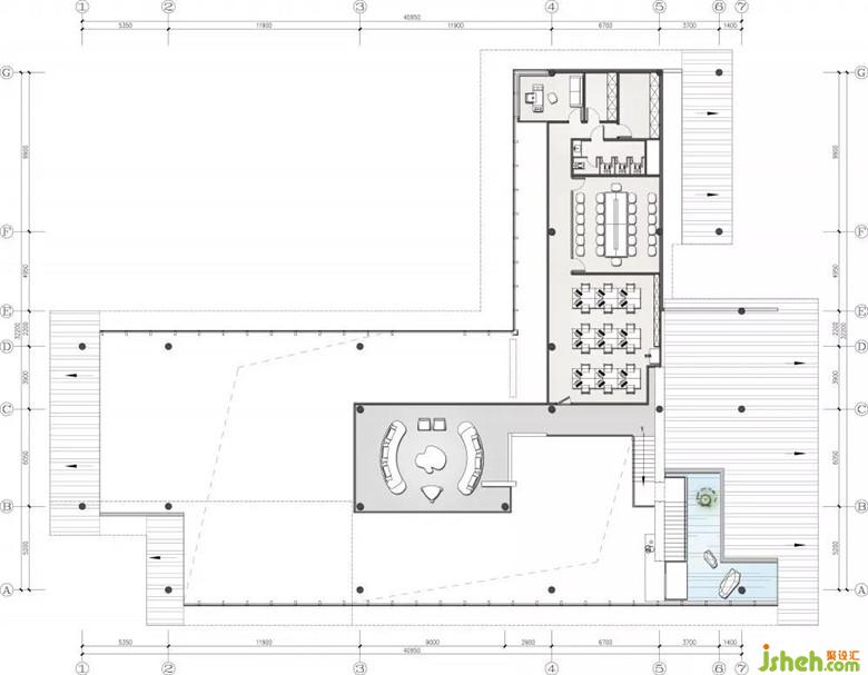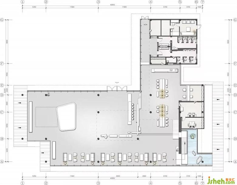 一樓接待區(qū)和二樓的VIP區(qū)之間,靜默存在又彼此串聯(lián)。吊腳樓強化了一樓與二樓架構(gòu)空間的起、承、轉(zhuǎn)、合,成就一種“你中有我,我中有你”的布局性手法,這不禁令人聯(lián)想到山城的大街小巷,跌宕錯落中又不缺乏奇幻的瑰想。