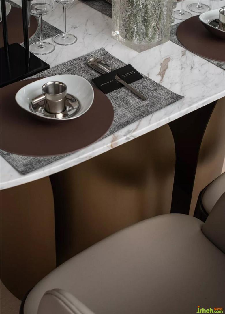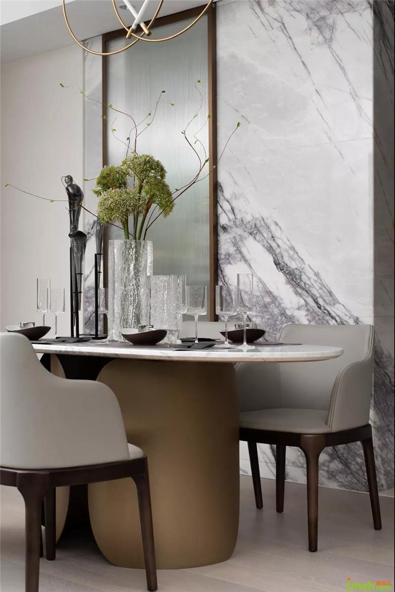 樣板房設(shè)計的大理石桌上盛著一縷陽光與花的芬芳,恰如有生命般在空間自由生長。廚房飄來妻子煲湯傳來的陣陣香味,丈夫座與餐廳品著剛開好的Whiskey,再來一首布魯斯吧!享受這份難得的愉悅時光。