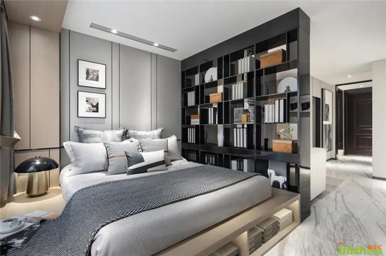 我們以不同尋常的構(gòu)思樣板房設(shè)計,讓書架在空間的作用被賦予多重意義。它不僅是閱讀、自修的場所,亦是讓客廳、臥室形成一種融合下的獨立個體。在為各空間帶來隱私性的同時,也不乏對空間尺度的把握。