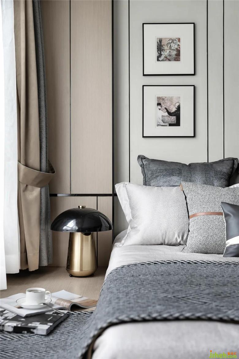 臥室,隱藏和包容著我們的一切。結(jié)合整體空間動線,床體整體采用榻榻米的形式,讓空間更具收納性,床品工藝細致考究,柔和光澤予人家的溫柔感,燈飾摒棄對刻板美感的盲求,亦別有一番滋味。