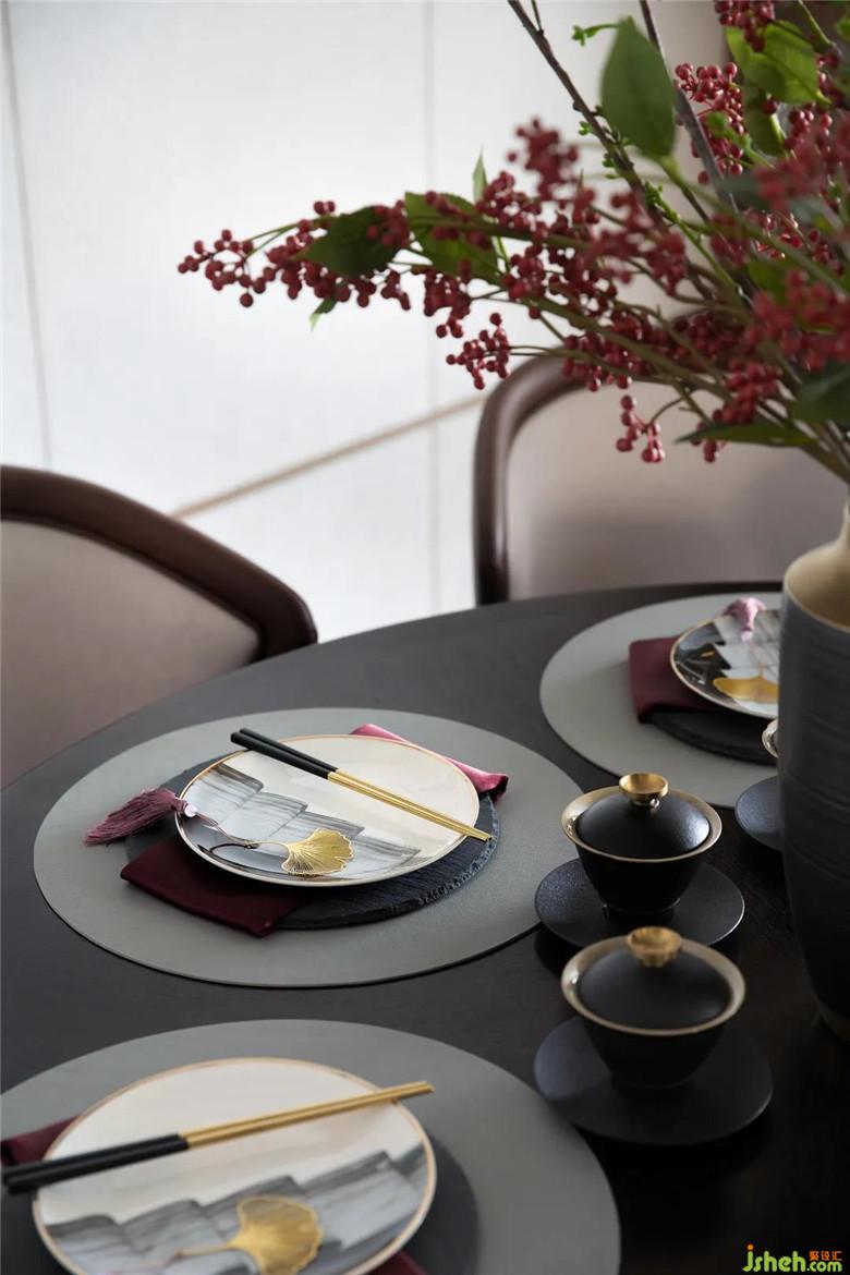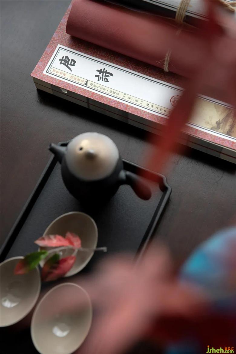 其間幾抹朱紅團(tuán)簇在一起,雕琢婆娑的東方畫境,而裝點的小物件——紅松、卵石、茶盞亦在平凡中露著脫俗的雅,圓融古香中通達(dá)著柔情整體色調(diào)如一幅春風(fēng)拂面的四月圖,遠(yuǎn)觀風(fēng)雅,近看悠意,撩撥每個波瀾不驚下的瞬間。