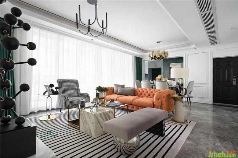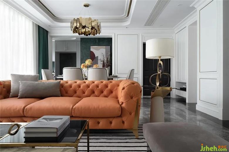 空間很大一部分的魅力來自于裝修公司將它兼容并蓄的巧妙搭配。入室,只覺鮮亮的豐盈氣息撲面而來,熨金線條平衡歐式風(fēng)格中的繁復(fù)感,輕巧漂亮的玻璃茶幾、氣息明亮的愛馬仕橙沙發(fā)使視覺亦或心跳,不覺都挑高了幾個(gè)弧度。裝修公司