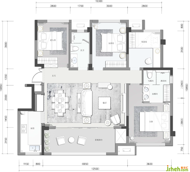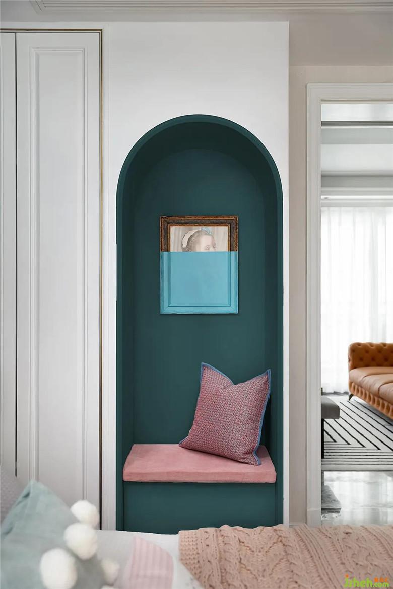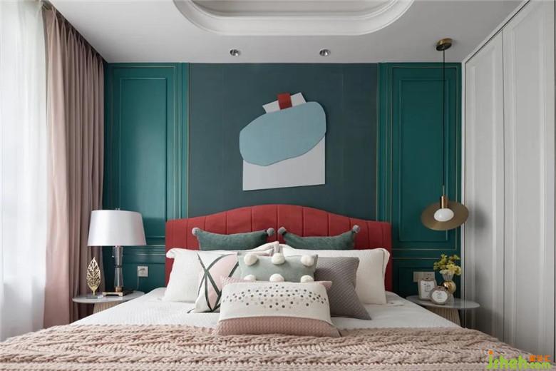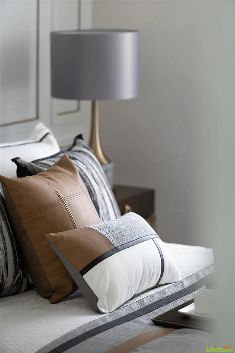 起居室直入心扉的,是平靜又愉悅的「歸屬感」,不自覺讓人放松下來。背景墻延續(xù)整體歐式味道,燈別具一格復(fù)古構(gòu)局,似在古堡小憩一般,觸摸布紋毛絨的床品,指尖下流淌的是細(xì)膩而飽滿的顆粒度。