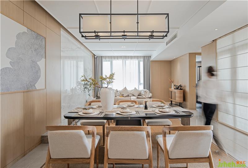一步一風(fēng)景、一景一陶然。一層整體利用原木色飾面和利落線條協(xié)調(diào)統(tǒng)一客餐廳氛圍,表述畫幅的純粹感與詩意感。全開放式布局營造空間的深度,客餐廳既自由開放卻也互不干擾。