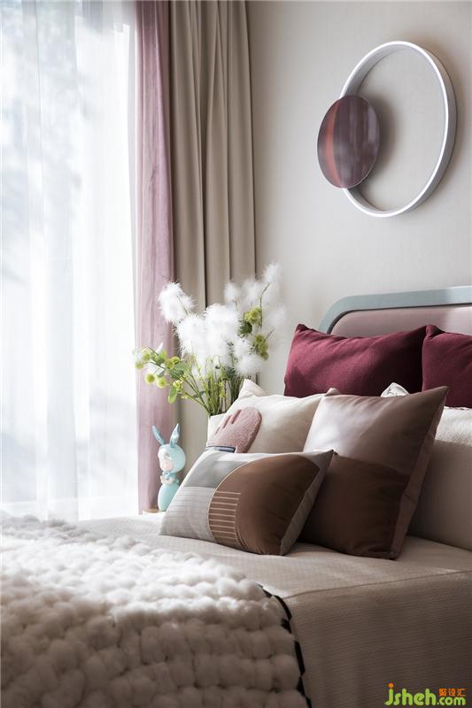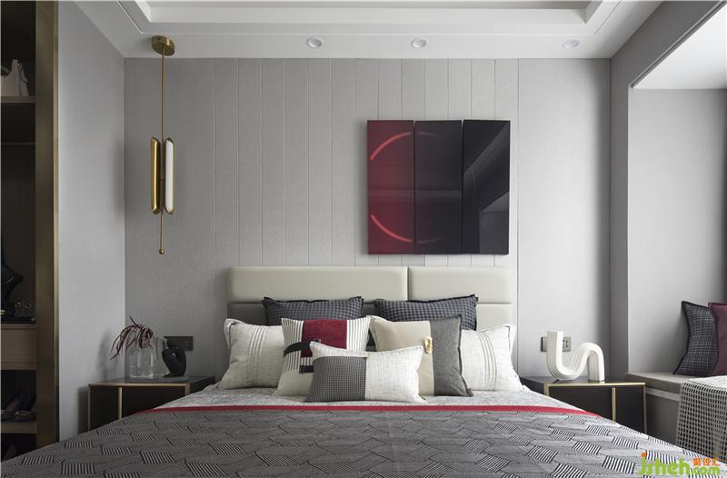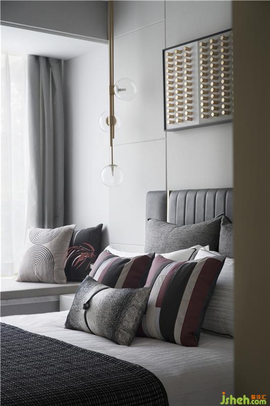 美的飾物的點綴,帶著恰到好處的驚喜,垂落的吊燈以玻璃的剔透質感盡顯優(yōu)雅,床頭的方形裝飾帶著幾許摩登氣息,穩(wěn)重中不失意趣。