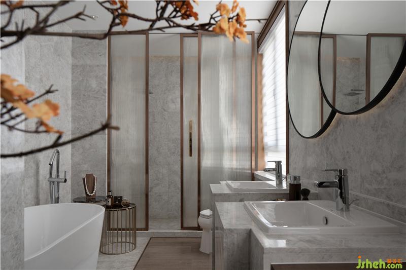愛(ài)馬仕灰石材與白色人造石,還有山水紋石材搭配