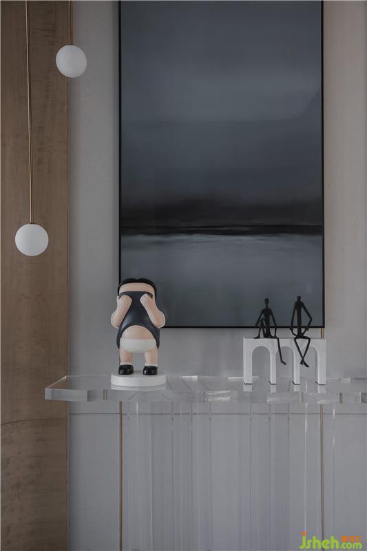 光連接了建筑和風景,落地玻璃與層高挑空表達出空間的光影質(zhì)感,令窗外景致一覽無余。大理石紋理釀雅韻,靈動視覺見風云。以白色,灰色為基調(diào),淺色壁紙,皮革及金屬為點綴,整體感受沉穩(wěn)并具有品質(zhì)感,使得整個客廳在天地之間盡顯“四兩撥千斤”的從容感,為我們輕松營造開闊又含蓄、別有一番滋味的雅韻會客格局。