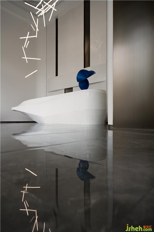 開卷之初,往往是人們最期待的時刻。們從熟悉的城市現(xiàn)實走近建筑,進入室內(nèi),開啟一段新的時空之旅。直覺性的審美是將光影的魅力發(fā)揮到極致,然后光線變成為了藝術(shù),空間的心緒在布局中展現(xiàn),從外觀到內(nèi)省,探索或修復(fù),一切好奇、治愈、回憶被收入室內(nèi),情緒與室內(nèi)設(shè)計、燈具、藝術(shù)作品、生活氣息相互交纏著、對話著,徹底滲入人的身心。整體空間將白、灰、藍色運用的恰到好處,一點點柔和的檸檬色在一片寧靜安謐的氛圍中展現(xiàn)跳躍的生命力。