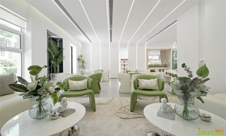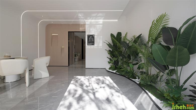 未來(lái)、科技是萬(wàn)物互聯(lián)的時(shí)代基礎(chǔ)。品牌區(qū),沙盤與洽談區(qū)相互呼應(yīng),一覽城市未來(lái)愿景。人人參與共建的新區(qū)藍(lán)圖,在空間語(yǔ)意的轉(zhuǎn)譯中傳達(dá)。樣板房設(shè)計(jì)形式和功能還應(yīng)加入精神的統(tǒng)一,而藝術(shù)裝置就是精神的載體,舒展蔓延,綠植鑲嵌,讓未來(lái)的多元可能融入日常公共生活。