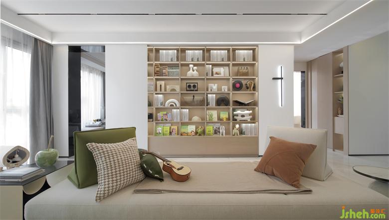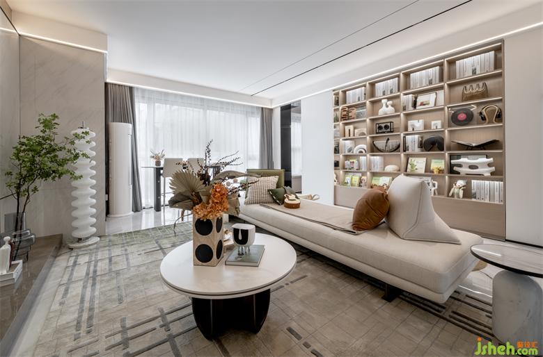 樣板房設(shè)計(jì)是從對事物的洞察中,為客戶提供不同的視角去看待世界。我們總說,房子有著主人的氣質(zhì),生活的氣息,我們從無主燈的設(shè)計(jì)和模塊化自由組合的沙發(fā),以及書柜柜體的藏品中似乎可窺見房主對藝術(shù)的鑒賞,這不僅僅是一個物品,更是在時間長河中發(fā)展演變,衍生出的藝術(shù)思想與藝術(shù)符號,更是一件可感知且可共情的作品。