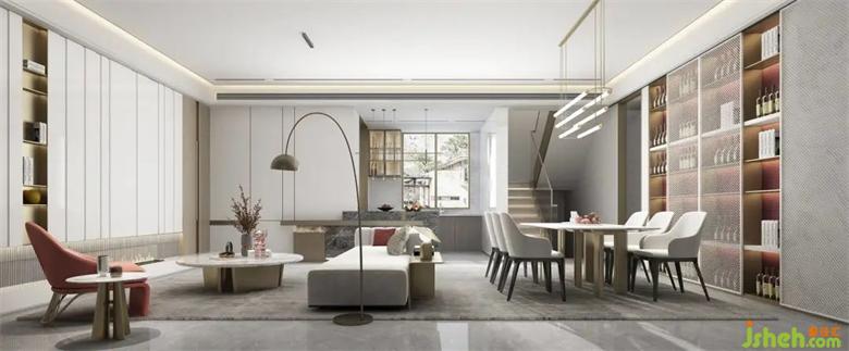空間自上而下流暢一體,營(yíng)造統(tǒng)一序列感,擴(kuò)大空間視覺。樣板房設(shè)計(jì)燈火可親,家人閑座,塑造出更自然、舒適的用餐環(huán)境。餐邊柜主體顏色與空間整體色調(diào)匹配,在視覺上延續(xù)空間的氛圍感。
