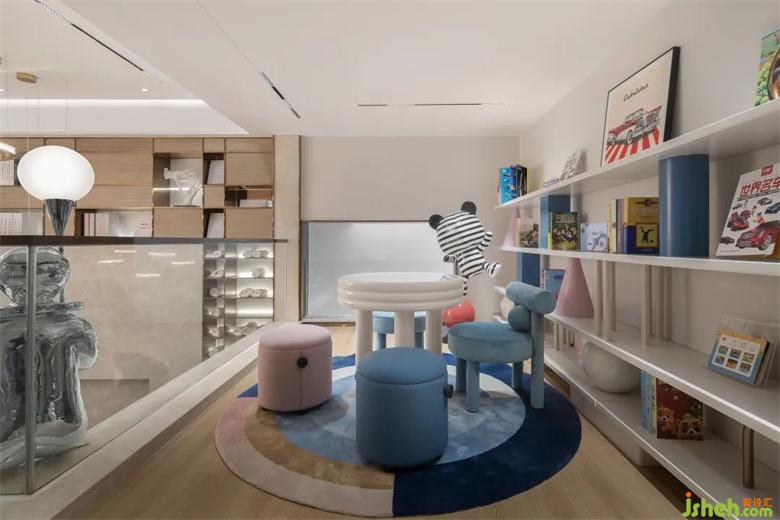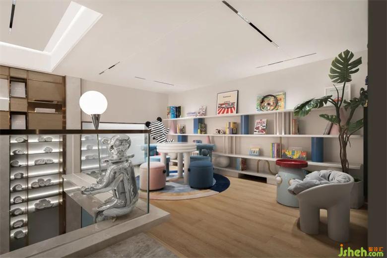“正是詩(shī)意首先使人進(jìn)入大地,使人屬于大地,并因此使人進(jìn)入居住。”空間的垂直動(dòng)線相互呼應(yīng),由開放的酒吧休閑廳轉(zhuǎn)入靈動(dòng)的繪本親子區(qū)。滿足親友歡聚、與之互動(dòng)的雙重需求,塑造了一個(gè)溫情脈脈的互動(dòng)空間。
