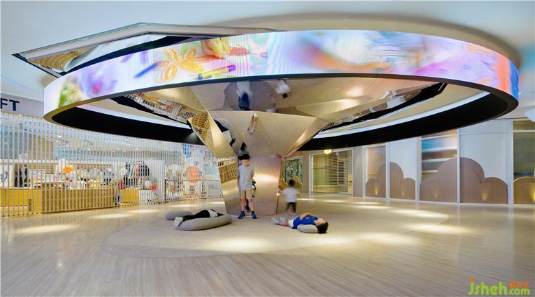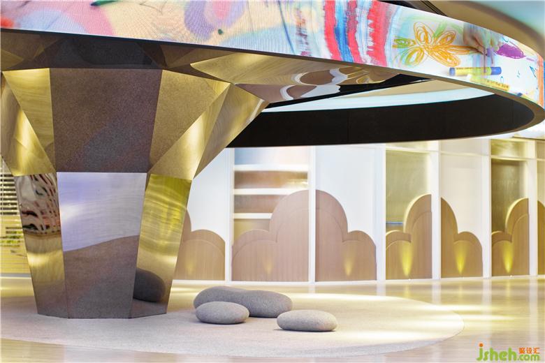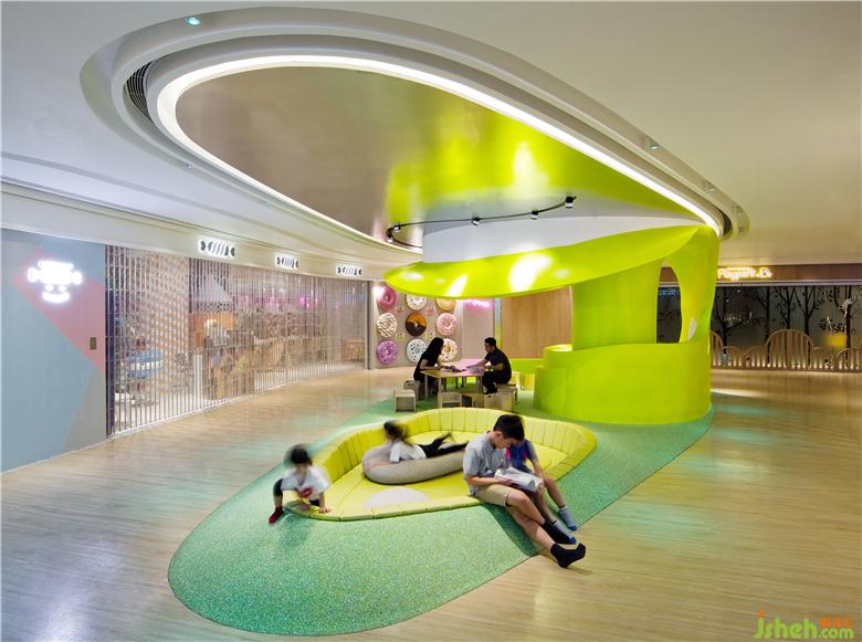 “Donut Playhouse”包括三個主要區(qū)域:身體,智慧和心靈。從兒童的角度出發(fā),基本的點,線,面元素組成了不同的空間功能:分別為運動空間,學習空間及表演空間。我們通過內(nèi)省,探索和發(fā)掘來培育成長中的孩子,室內(nèi)兒童樂園設(shè)計以提高他們的體格,思想和精神素質(zhì)。公共設(shè)施包括禮賓臺,座椅及導示系統(tǒng)均按照兒童人體工學需求而設(shè)計。親子洗手間為成人和兒童的身高量身打造:廁格,洗手中島,男洗手間內(nèi)的”Co-wee-wee”區(qū)域均經(jīng)過專門設(shè)計,可提供以用家為本,有趣且超越期望的體驗以建立更緊密的人際關(guān)系,這都是童趣和增進孩子自尊心的體現(xiàn)。