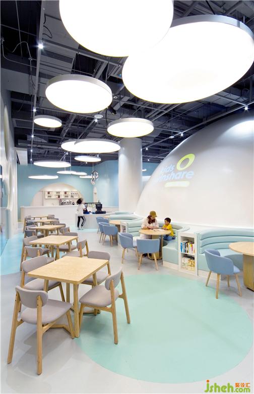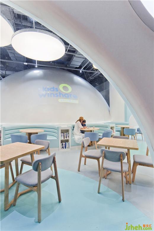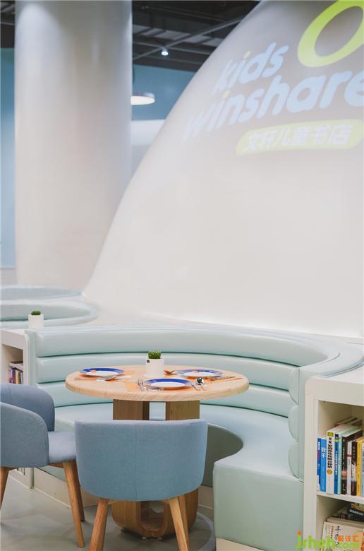 結(jié)合一系列圓形和拱形的抽象地境把書店分為兩個主要區(qū)域,文軒兒童書店作為復(fù)合型書店,其目的不僅是為0-12歲的兒童提供看書和購書需求,更是把教育與學(xué)習(xí),親子餐廳和社交活動結(jié)合在一起,于同一空間內(nèi)共同呈現(xiàn)。