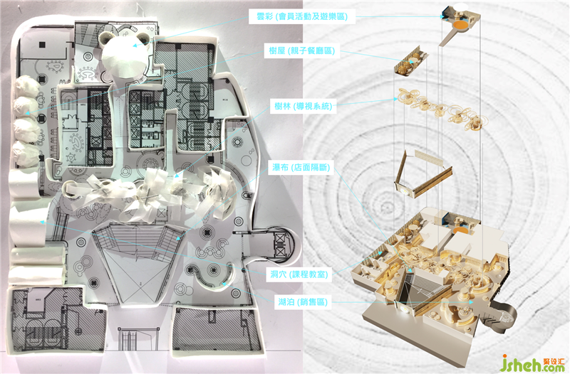 整個兒童書店設(shè)計(jì)空間圍繞住中間的亮點(diǎn)是浮在天空上面巨型的發(fā)亮花瓣造型,在不同的區(qū)域都能夠識別它們的方向感,從而達(dá)到標(biāo)志系統(tǒng)的功能。