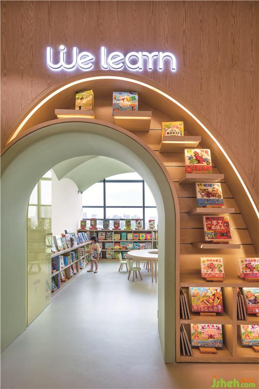 這間兒童書店的空間概念是”書游記”。這是一個非傳統(tǒng)的兒童書店,在大概2300平方米的空間內(nèi)包括了零售,學(xué)習(xí),餐飲和游樂四大功能的一個復(fù)合親子空間。