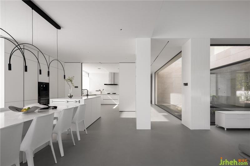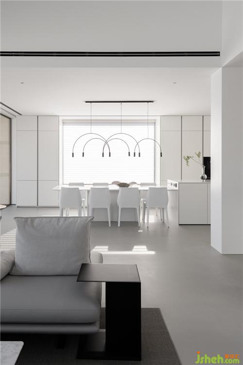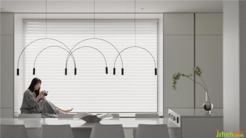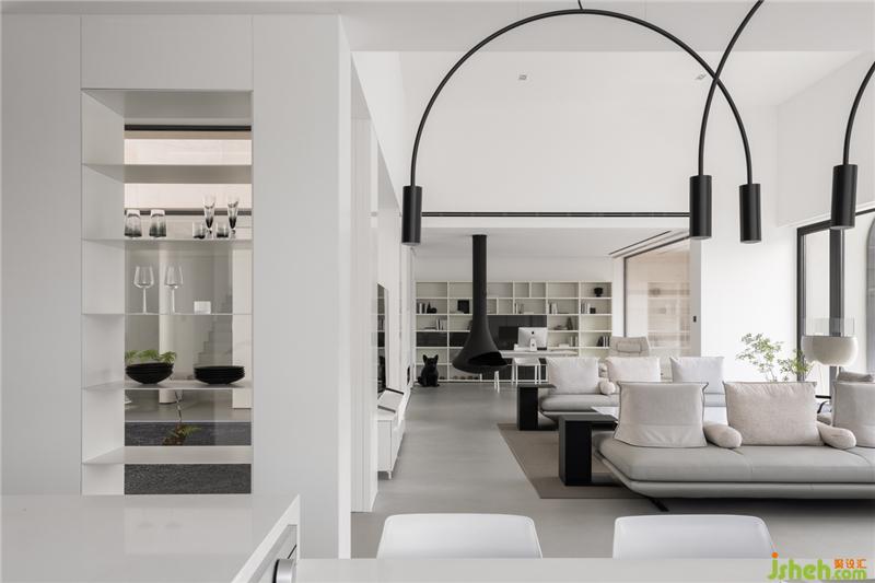大面積的留白,極盡簡約的黑白色彩搭配靈動線條的設(shè)計,儼然營造出簡單、冷淡、寧靜的生活氛圍,讓空間更加的空曠通亮。