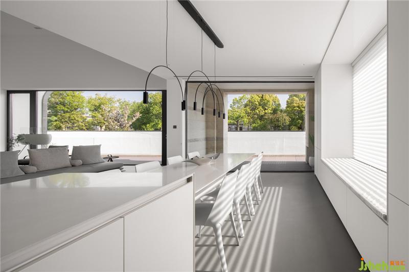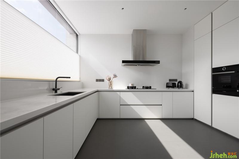 在空間的塑造上,設(shè)計師多處采用了柜體設(shè)計,柜體顏色也是明亮的白色,實用性非常強(qiáng),將設(shè)計融入到功能性里,用連貫的手法和語言來表現(xiàn)。讓整個空間統(tǒng)一完整,視覺上也顯得通透明亮。