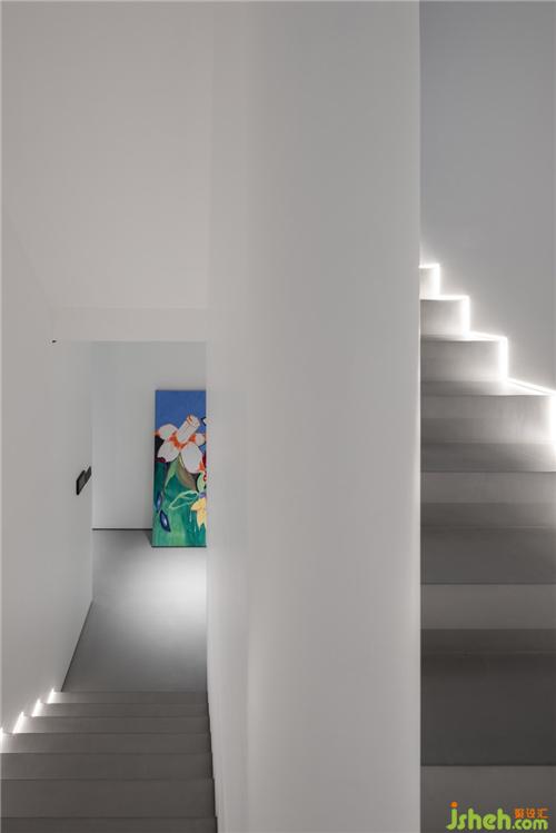 純白色的臥室容易給人一種冰冷感,因此設(shè)計(jì)師在臥室區(qū)域選用了原木色柜體與地板,中和了整體的冷感,干凈的純色背景,室內(nèi)光線投射顯現(xiàn)不同層次的感官感受,增添整屋的精致感蘇州別墅裝飾。