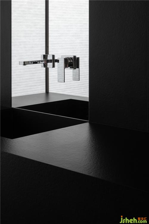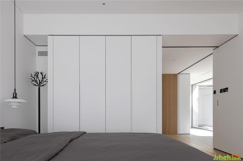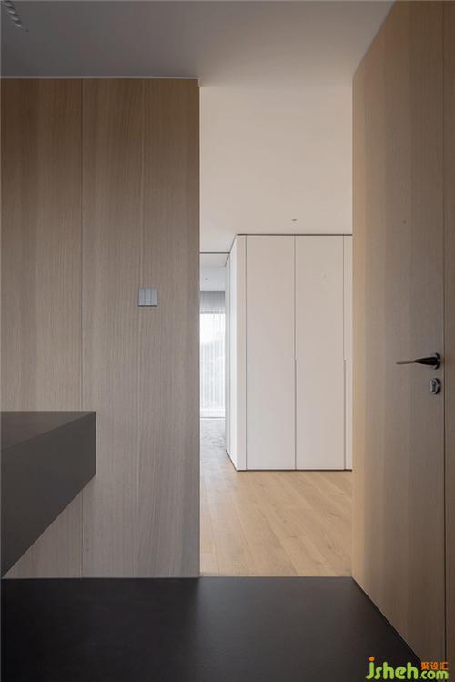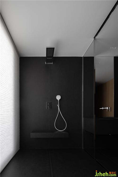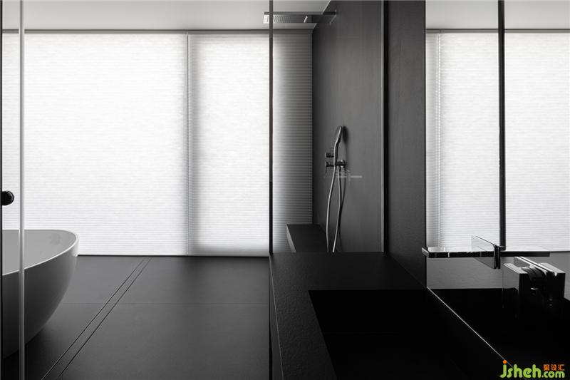 木質(zhì)隔門分割兩個(gè)空間,營造兩種截然不同的使用感受,臥室是優(yōu)雅的純白,與之截然相反的是冷暗色調(diào)盥洗室,充盈著高貴亮眼的黑蘇州別墅裝飾。