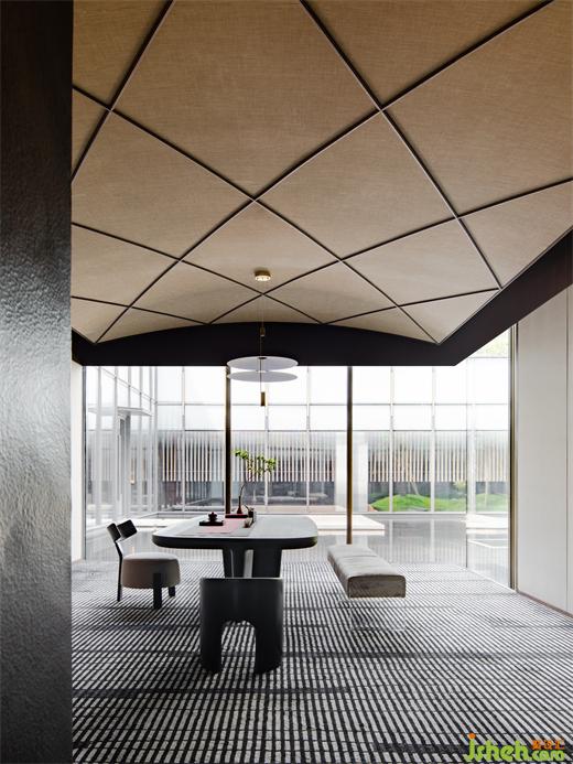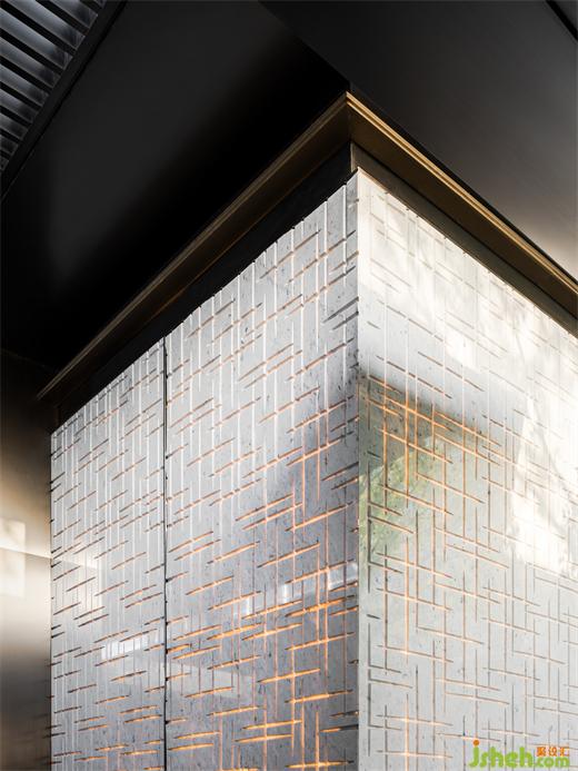 “覺知亭”四面石墻低垂,僅與水面相接處留有間隙。南京會所設(shè)計投身其中,喧鬧世界于己無關(guān),水面溫柔如鏡,投射一派清快。水天相接處獨己一人,空空畫境里滿是自在?!坝X知亭”用一種類似于擠壓的方式完成了空間衍生,建立在簡潔審美上的試驗性設(shè)計提升了空間美感。