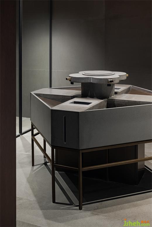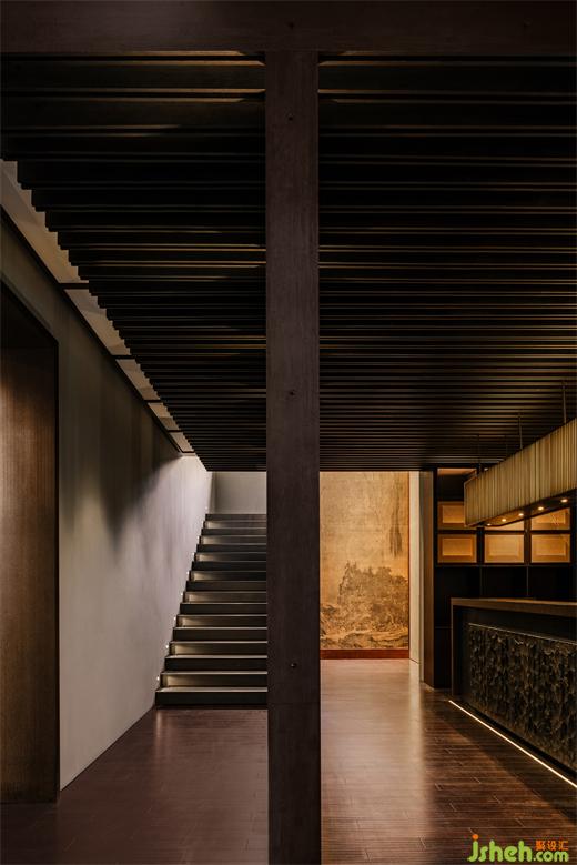 繞過(guò)潺潺水聲,步入門廳,‘一香凝然’是門廳美好的靜默者。南京會(huì)所設(shè)計(jì)獨(dú)柱托舉起頂部上空,巨大的天然石料橫臥其下,似古樹之下把酒撫琴之趣。使通過(guò)的食客在這個(gè)空間短暫的佇立,感受情緒的微妙變幻,將其帶入空間想要表達(dá)的古典氛圍。