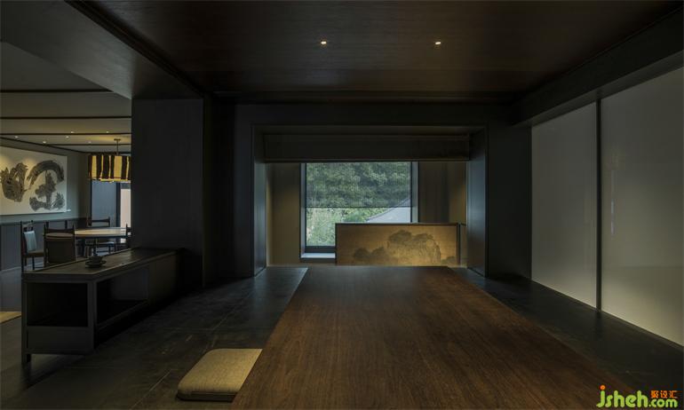 綢帶般縈回的走廊,如鳥展翼般排列的飛檐與并排相向的柱體,自未央而連南面包廂,趨向幽深迷離。南京會(huì)所設(shè)計(jì)兩面并列升起的包廂,似有歡聲縈繞,絡(luò)繹不絕,與庭院的建筑、景觀相映成趣,處處皆景。