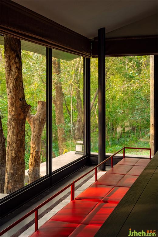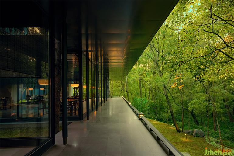 南京會所設(shè)計經(jīng)由深幽小道的指引,有亭坐落于更深處,懸挑出山體,于山林中潛行,沉在谷底仰望日光印在樹梢推移變換。那一刻心臟停止了跳動,一對巨大的鹿在近處掠過,悄然無息,沉穩(wěn)、有力、典雅。是的,我們處在天地無涯的形式中,自然有我們不能理解的自我認證,而此刻的體驗也無須去理解,因為我們也是她其中的一部分。