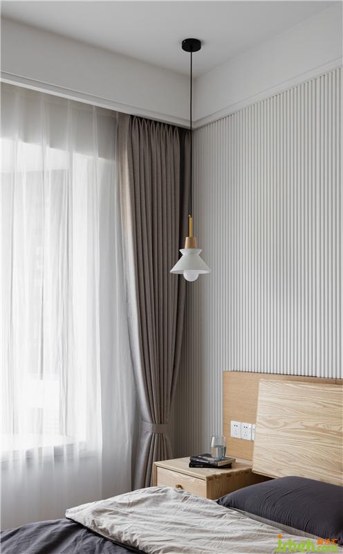 同時榻榻米兩側(cè)均為收納柜,床頭軟包上方為深度350mm的淺柜,用于放置書籍等,床后方為一組標(biāo)準(zhǔn)大衣柜。