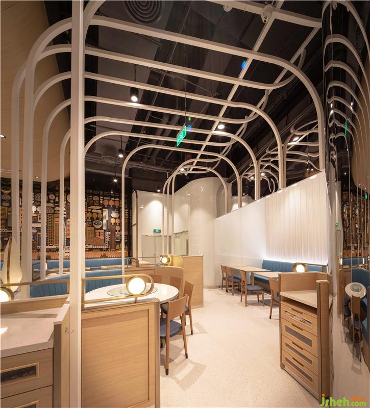 白色流線條造型,既起到劃分區(qū)域的作用,又在保證空間通透的同時,稍稍保障私密性,顧客更愿意在這里閑坐,靜享輕松時光。
