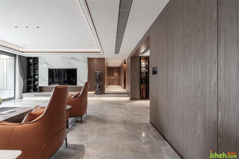 走廊的兩旁是臥室、書房及衛(wèi)生間。家裝設(shè)計(jì)連貫的空間讓視野開闊的同時讓空間的分化特別規(guī)整,讓空間得到更深層次的利用,色彩與燈光的搭配,簡潔的線條,干凈利落,每一個細(xì)節(jié)把握有度。