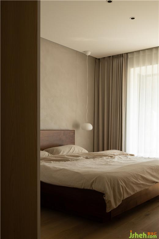 主臥通過材質(zhì)的區(qū)分為簡單的空間增加層次,飄窗正面的設計選擇做了扇整玻璃,側面做開啟。請自然入畫,渾然天成一副動態(tài)四季圖,借用外在的景色,為室內(nèi)帶來無限生機。