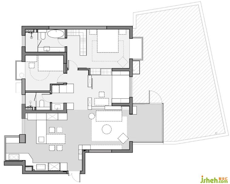 鬧中取靜的露臺是室內(nèi)與室外的交匯點,掙脫邊界的束縛,它將自然資源與人文情懷完美結合,家裝設計在無壓力的環(huán)境中進行真摯的交流,在野趣與浮華之間尋得一種藝術的平衡。