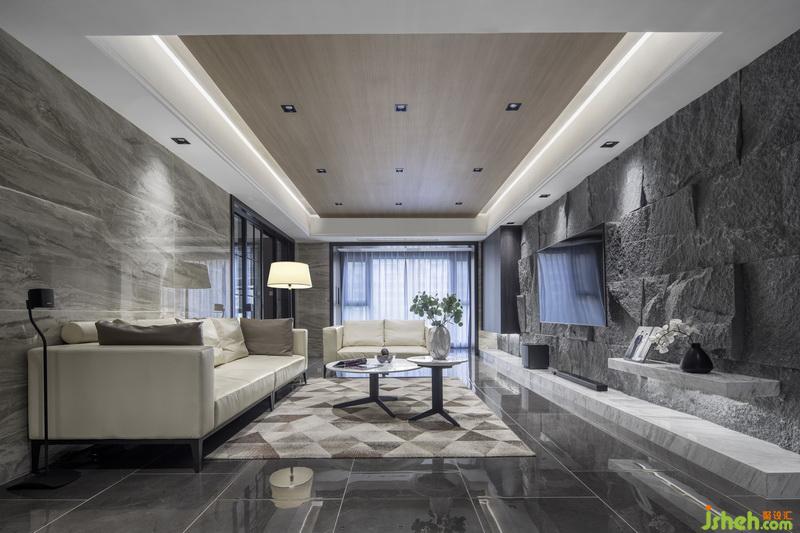 空間采用了天然毛石,木質飾面板,天然大理石,石材瓷磚等