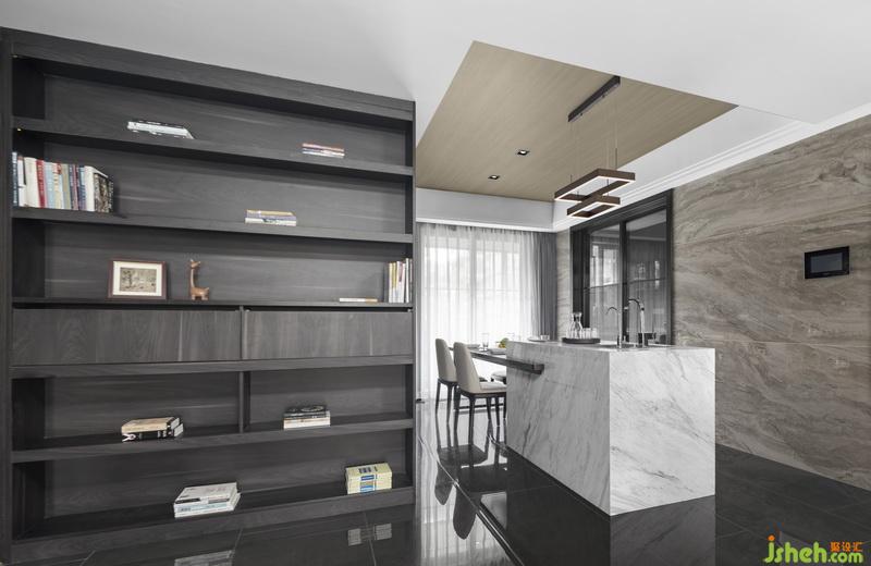 此案女主人職業(yè)為金融業(yè),男業(yè)主為律師,在多次溝通后將本案色調定位為沉穩(wěn)時尚的黑白灰色調,讓業(yè)主在自由的空間能夠靜心思考,為了打破沉悶的基調,加入了木色讓整體色彩和諧統(tǒng)一