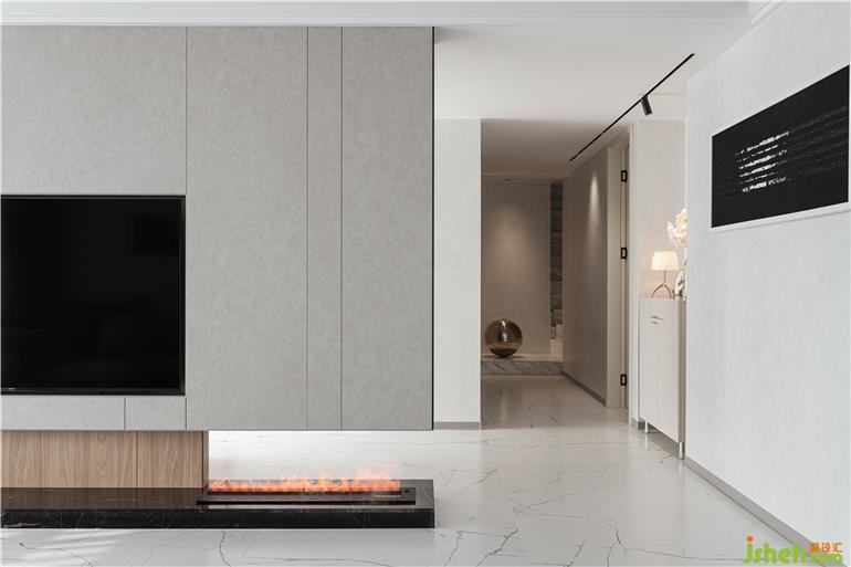 2、電視墻拆除多余墻體,做成懸空電視墻,使空間感更加通透