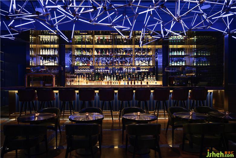 8米長的吧臺占據(jù)了整個酒吧的主導位置,室內(nèi)設計師利用大面積的鏡面將原本不大的空間在三維中延伸,映襯著對岸的風景,專門定制的主花燈以老船廠的結構支撐形式為出發(fā),重復、疊加,用數(shù)控將音樂與燈光統(tǒng)一聯(lián)動,使整個空間呈現(xiàn)出夢幻般的律動。