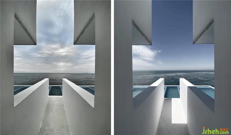 墻體向水面延伸使建筑有了明確的方向性,視線透過水面指向海平面,建筑體所帶來的秩序感構(gòu)成了人們對于場地的另一種感知。