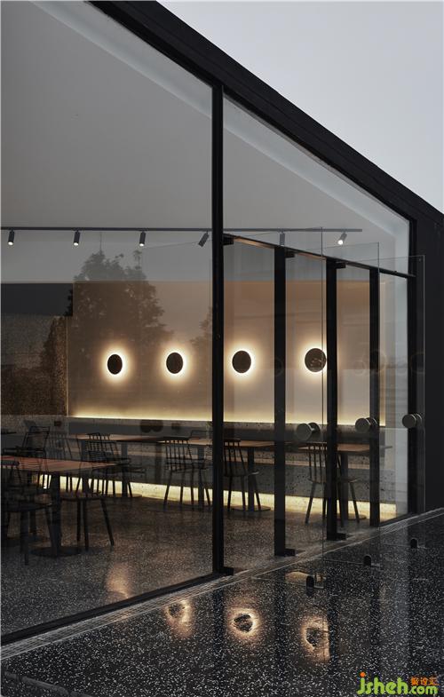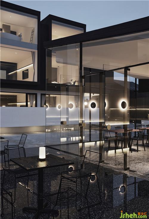 餐廳部分沿用整體的黑色基調(diào),在8m*8m的建筑紅線內(nèi),利用對(duì)角拉出整個(gè)屋面的受力結(jié)構(gòu)體,使整個(gè)屋面呈現(xiàn)懸浮感,上海酒店民宿設(shè)計(jì)斜面的處理也弱化了由于尺度限制所帶來(lái)的空間局促感,在視覺(jué)上形成多維度的空間縱深感。