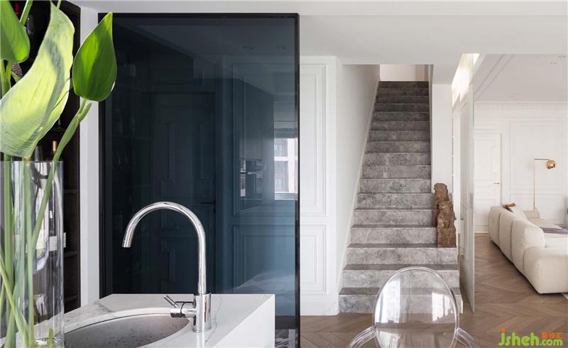 Many Chinese-style objects are used in the furnishings. Buddha statues, celadon, Tang horses, and ancient stools echo the memories and inner feelings of the owner of the boyhood. The small stones on both sides of the Buddha statue are pale and gray, mixed with rough white. It was a trip in a certain year. On the way, the children picked up in the distant Alps, and now it has become one of the elements of the overall design, continuing the children's beautiful memories.