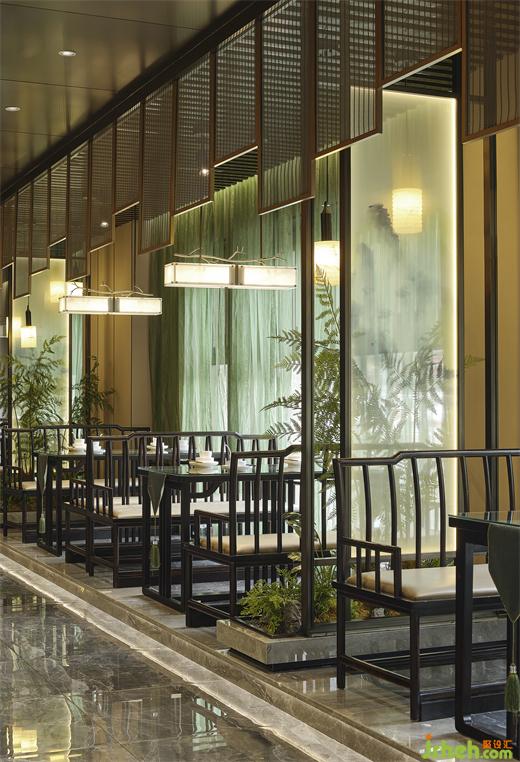 在本案中,徐州酒店設(shè)計師從水的靈動中獲取靈感,以現(xiàn)代手法演繹山的起伏,水的纏綿,通過綠植、假山等綠色清新自然裝置的渲染,演繹出具有東方品質(zhì)的現(xiàn)代風格,來完成空間的藝術(shù)化表達,打造水與自然的新中式餐廳。