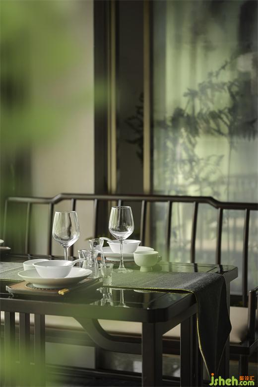 在感受現(xiàn)代東方美學之余,徐州酒店設(shè)計采用環(huán)保、有機、自然生態(tài)的理念注入一層卡座區(qū)。綠植小景的植入,窗邊綠色窗紗點綴,伴隨“隔簾花葉有輝光”這樣的景致,構(gòu)建出一處生機盎然的自然場所,營造清新愉悅的就餐環(huán)境。