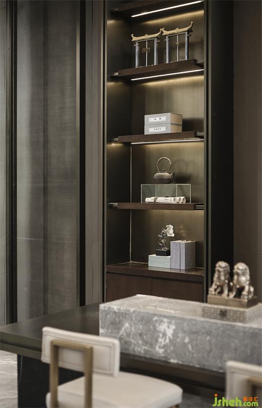 文房四寶亦是空間亮點,將東方的意境最大限度的用現(xiàn)代設(shè)計語言重述整合展現(xiàn),正是營銷中心設(shè)計師在本案想要表達(dá)的,藝術(shù)賦予生活以靈魂,二者的融合遷徊著無盡的美學(xué)意蘊。