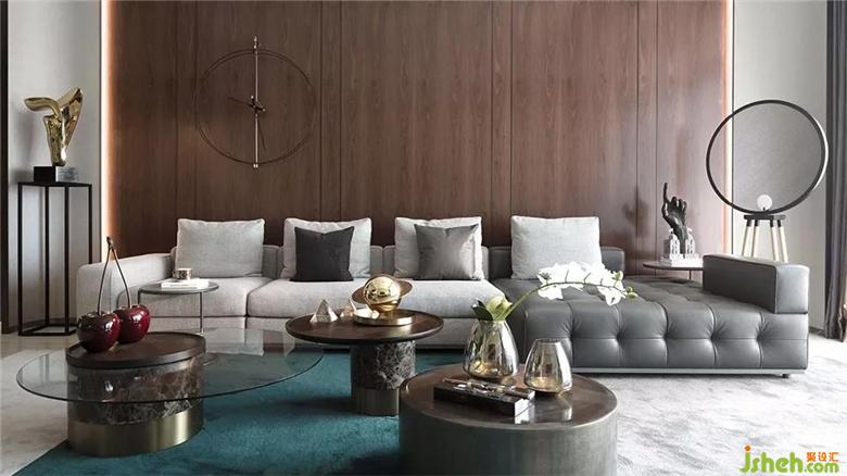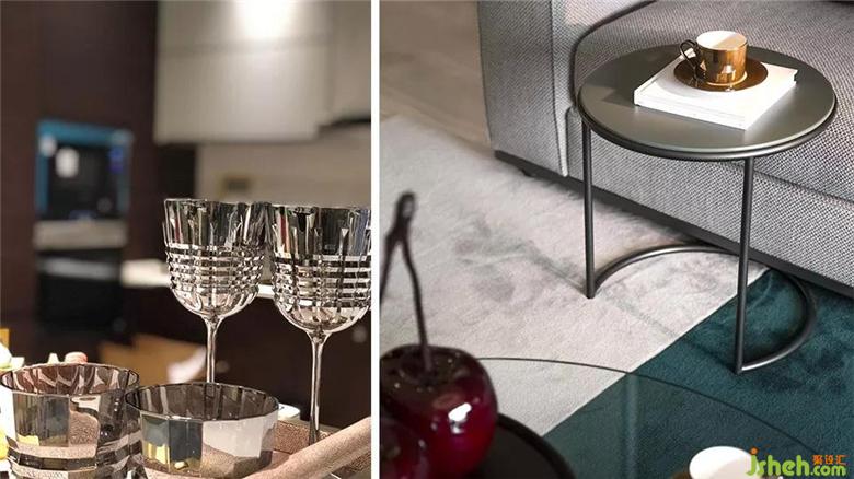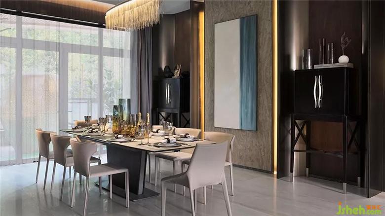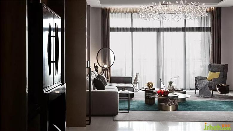 軟裝手法采用混合、疊加、錯位、裂變、象征、隱喻等。創(chuàng)造溶感性與理性創(chuàng)造、集傳統(tǒng)與現(xiàn)代于一體“亦此亦彼”的室內(nèi)環(huán)境。在配飾設(shè)計上,采用了抽象的裝置擺件與超現(xiàn)實主義的掛畫相呼應(yīng)結(jié)合木、布藝、皮革、玻璃等材質(zhì),演繹一種極致而時尚生活方式。