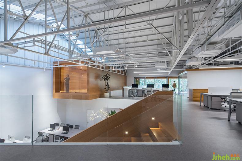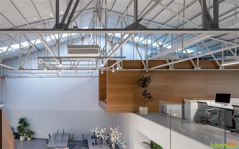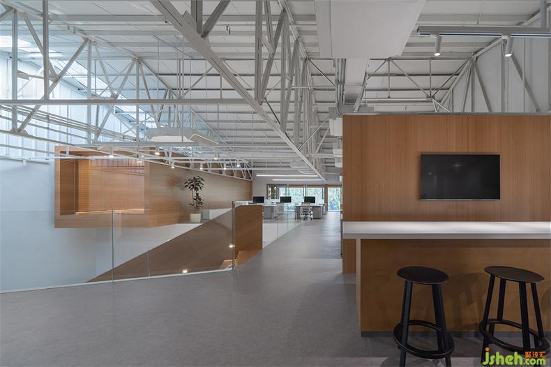 普悅設(shè)計(jì)最大限度地保留了原建筑結(jié)構(gòu),辦公室設(shè)計(jì)是對(duì)歷史的回望和尊重。屋頂?shù)母脑齑蜷_(kāi)一部分天窗,引入的自然采光勾勒出屋梁鋼結(jié)構(gòu)富有幾何節(jié)奏的線條。光影隨著時(shí)間而變,猶如在面向未來(lái)時(shí),那些非確定性所帶來(lái)的特別體驗(yàn)。