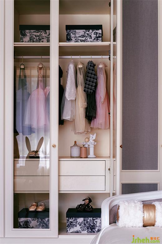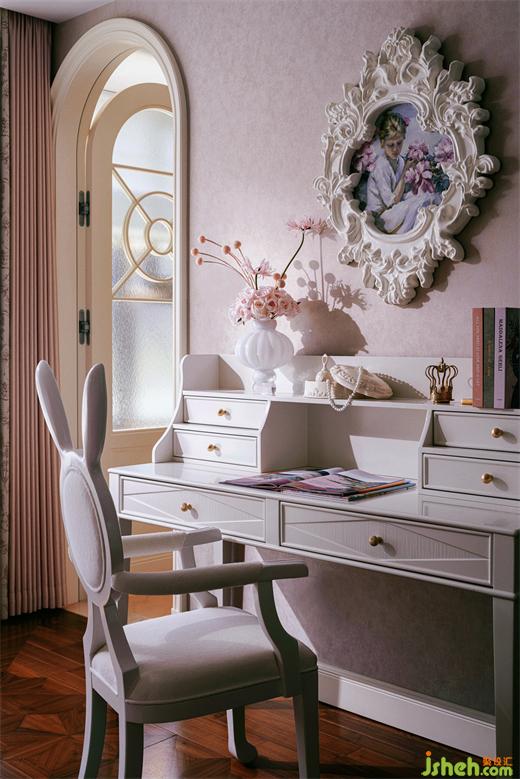 更為輕盈柔美的,也更富戲劇性的,是女兒房的設(shè)計。樣板房設(shè)計粉色與白色紗簾的結(jié)合,籠住一室天真浪漫幻想、和對公主般精致生活的憧憬。屋中的美學(xué)核心是如「吉賽爾皇冠」般完美形態(tài)的大床,緩緩勾勒著對小主人皇冠上珍珠般的憐惜疼愛。