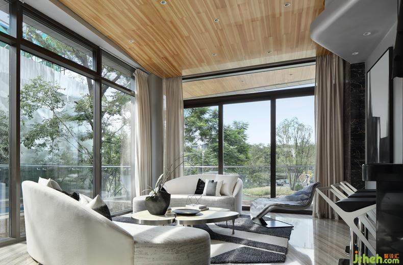 The warm wooden ceiling, the mottled light and shadow of the white geometric wall, the soft and lazy sofa, and the collision of wood color and black and white ensure the overall openness and artistic tension, and create an emotional and contemporary space.