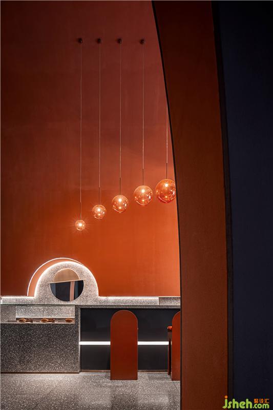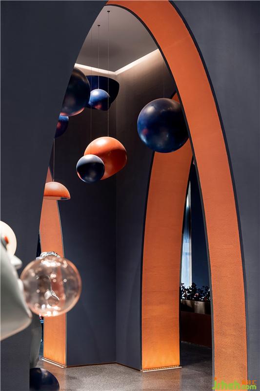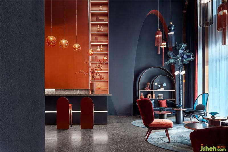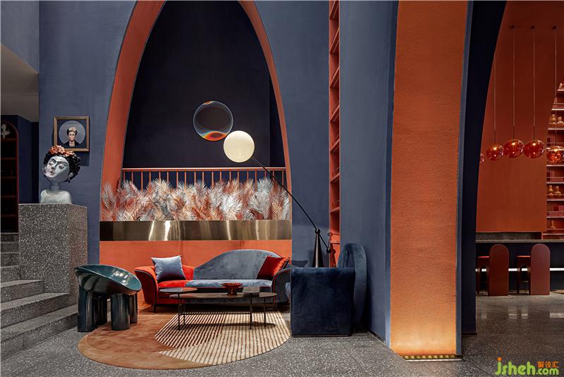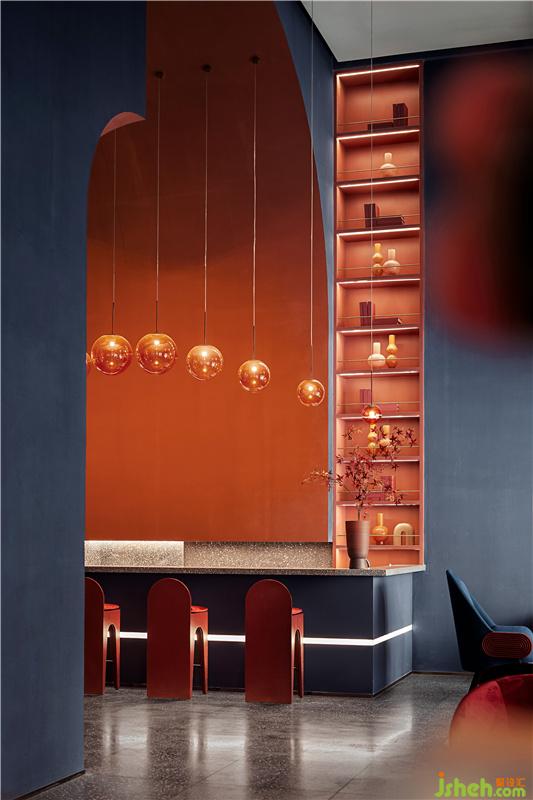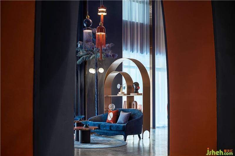 通過藝術(shù)化的營造,墻體弧形曲線、光線、家具、燈具設(shè)置飾品等都成了藝術(shù)化的一部分,每個物件緊密結(jié)合,相互呼應(yīng)。冷與暖、躍動與靜謐、色彩的感性與線條的理性,看似反差的元素碰撞出強(qiáng)烈的個性,看似高冷的藝術(shù)與有溫度的生活融為一體。
