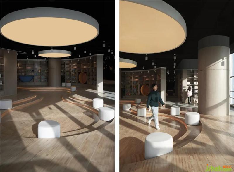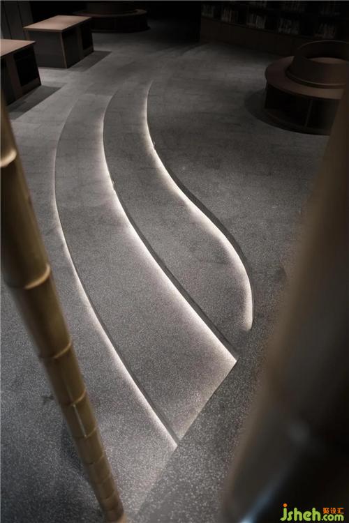 空間色彩以黑白灰為基調(diào),穿插木色和現(xiàn)代的金屬色,用自然的材質(zhì)和現(xiàn)代工業(yè)感的材質(zhì)對(duì)比,致敬經(jīng)典,傳承經(jīng)典。童書繪本區(qū)在自然光線可以灑進(jìn)來(lái)的區(qū)域里,書架高度恰好是讀者抬手可觸及的位置,較矮的梯步與燈帶都恰到好處。史蒂夫·喬布斯說(shuō):創(chuàng)意就是把所有微小的點(diǎn)連接起來(lái)。然后平靜淡然,向文字和生命提出了平等對(duì)話的邀請(qǐng)。