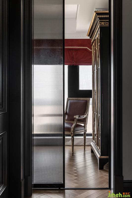 黑色給人深沉莊嚴(yán)之感,加上金色的大氣、紅色的耀眼,莊重而不失美感,當(dāng)黑色與金色相遇,復(fù)古與時(shí)尚的拿捏恰到好處,黑色玻璃拉門增加透光度,展示柜里裝滿了屋主多年從各地收集來(lái)的娃娃,室內(nèi)每一角落都做到完美與精致。